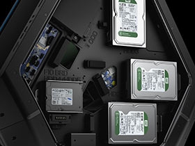 8) Big storage. Pure speed:Mar 4, 20161 min readdesktop-area51-mag-965-features-7b The storage bays support up to five drives of either SSD or HDD. Enjoy the pure speed of solid state and the big storage of hard drives – allowing for quick boot and massive archiving capabilities.